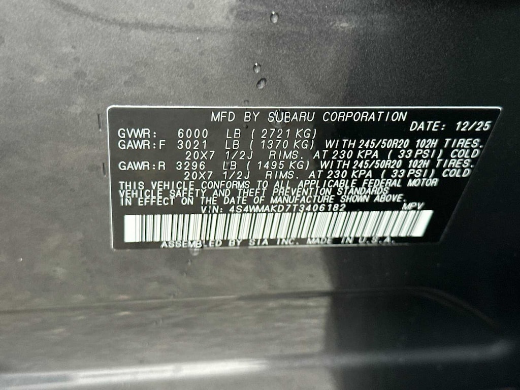 • Front tires: 245/50HR20.0