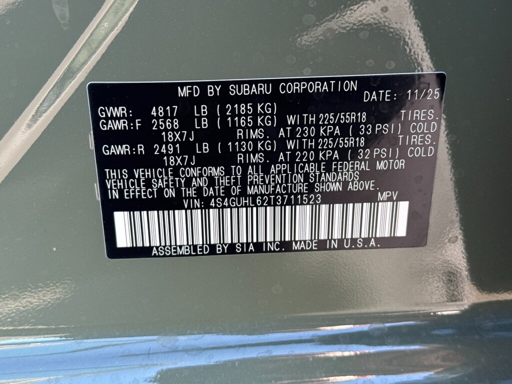 - Front tires: 225/55VR18.0