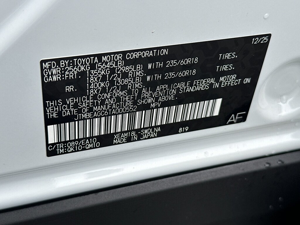 • Rear tires: 235/60VR18.0