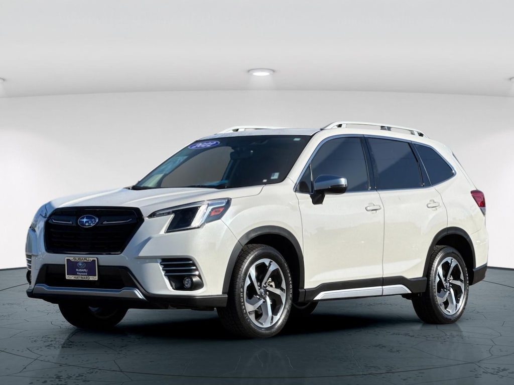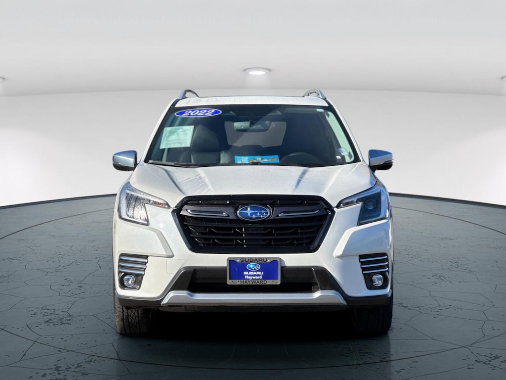 One Owner, Clean Carfax, Forester Touring, Crystal White Pearl, Black w/Perforated Leather-Trimmed Upholstery, 9 Speakers, Air Conditioning, Anti-whiplash front head restraints, Automatic temperature control, Dual front impact airbags, Dual front side impact airbags, Electronic Stability Control, Emergency communication system: STARLINK Safety and Security (Subscription Required), Exterior Parking Camera Rear, Front anti-roll bar, Front dual zone A/C, Front fog lights, Fully automatic headlights, harman/kardon 576W Amp & Speaker System, Heated door mirrors, Heated Front Bucket Seats, Heated rear seats, Heated steering wheel, Knee airbag, Leather Shift Knob, Navigation System, Occupant sensing airbag, Overhead airbag, Perforated Leather-Trimmed Upholstery, Power Liftgate, Power moonroof: Panoramic, Radio: Subaru Starlink 8.0 Multimedia Nav System, Rear anti-roll bar, Remote keyless entry, Security system, Spoiler, STARLINK/Apple CarPlay/Android Auto, Turn signal indicator mirrors, Wheels: 18 x 7.0J Dark Gray Machine Finish Alloy. 26/33 City/Highway MPG. . Crystal White Pearl 2022 Subaru Forester Touring AWD Lineartronic CVT 2.5L 4-Cylinder DOHC 16V. . . SUBARU OF HAYWARD, UNDER NEW OWNERSHIP! We have an extensive and exciting selection of pre-owned cars. We carry a variety of makes and models to ensure you are able to find what you're looking for.