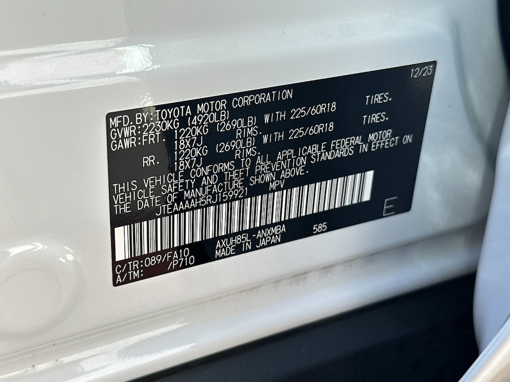 - Rear tires: 225/60HR18.0