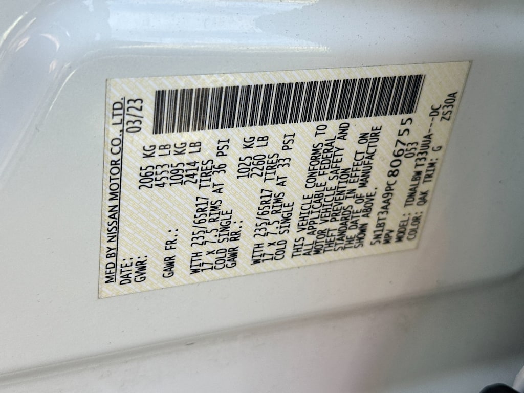 - Front tires: 235/65HR17.0
